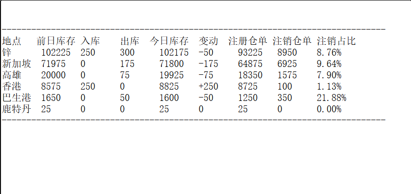 LME 2月16日锌库存分布情况