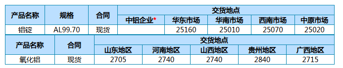 中铝股份公司主要产品4月17日现货报价