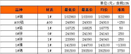 长江有色金属现货4月20日平均价