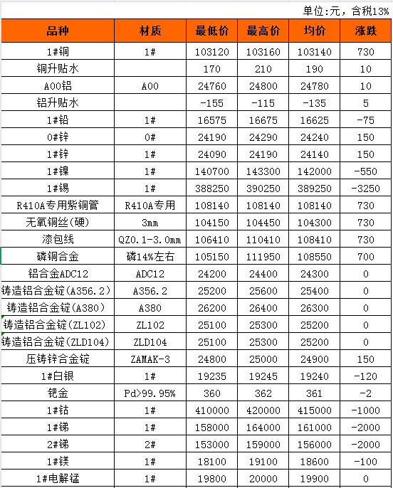 长江有色金属现货4月23日行情