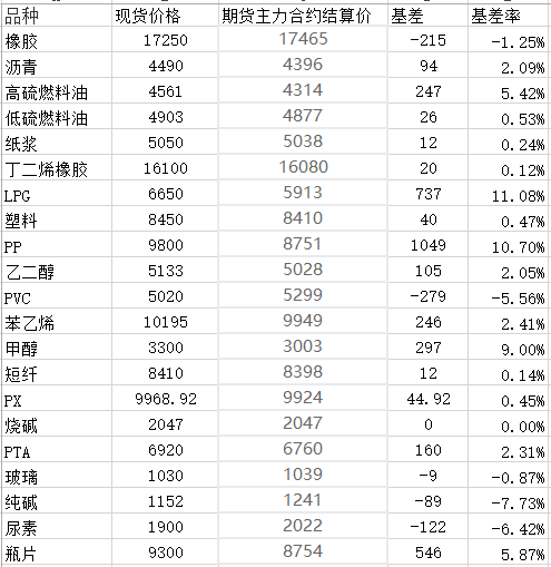 1、基差=现货价格-期货主力合约收盘价,基差率=基差/现货价格*100%2.品种 现货指的橡胶 下海天然橡胶均价
