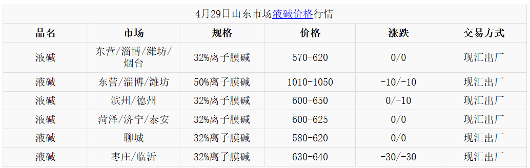 山东液碱走势依旧不佳,送主力下游氧化铝32碱量持高不下,压车严重,省内32碱库存继续增加,市场表现较差,不排除有继续下调可能。其中鲁西南32%离子膜碱主流成交580-625;鲁中东部32%离子膜碱主流成交570-620,50%离子膜碱1010-1050;鲁北32%离子膜碱主流成交600-650;鲁南32%离子膜碱主流成交630-640。(单位:元/吨)